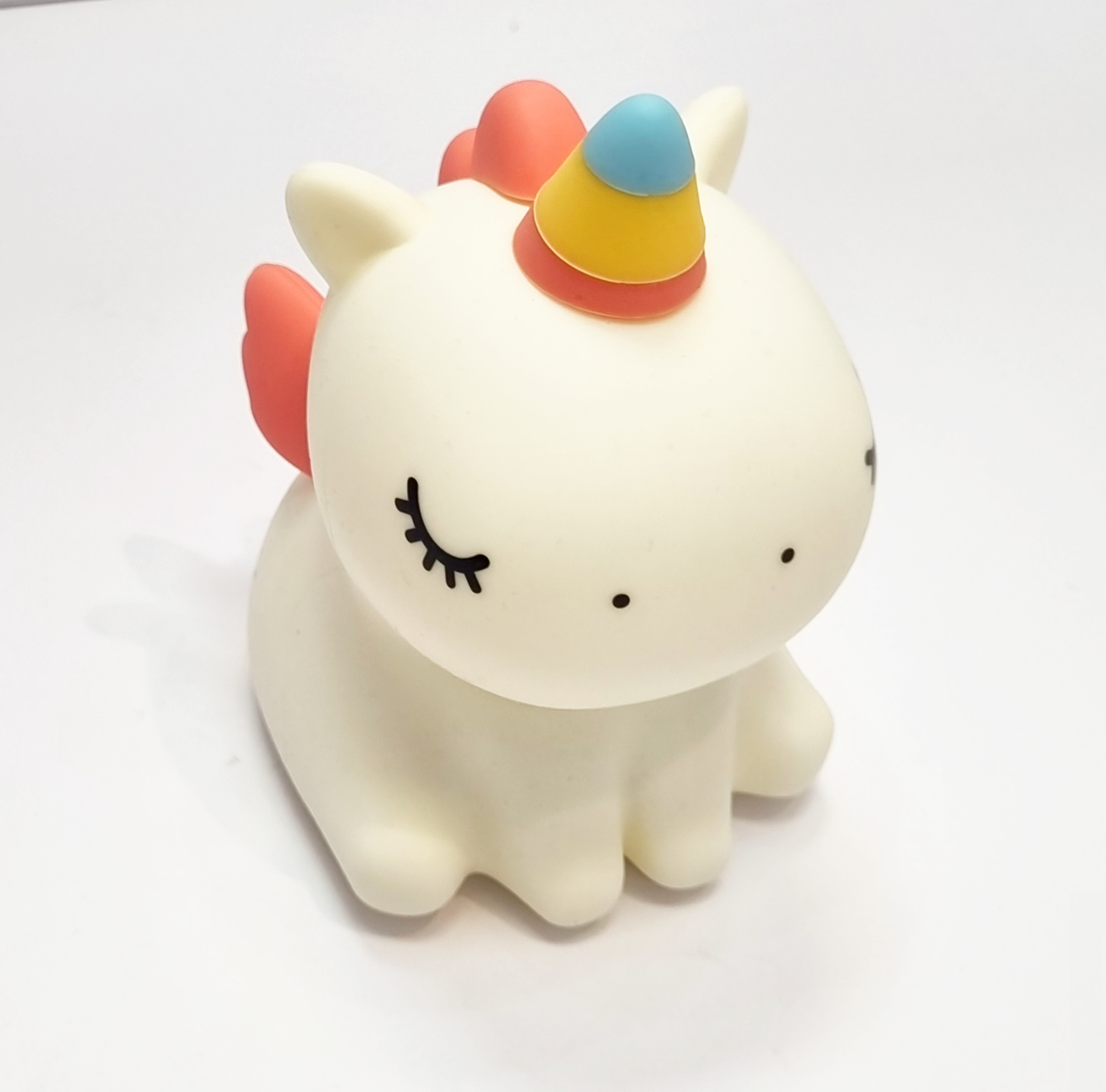 چراغ خواب سیلیکونی طرح یونیکورن لمسی هست و با ضربه کوچک تغییر رنگ نور داره