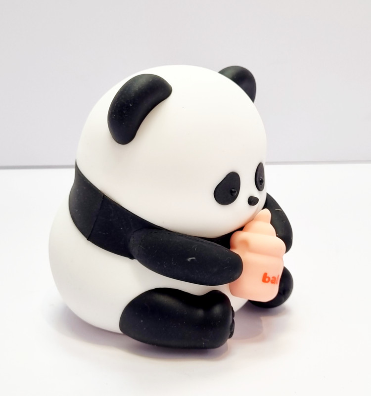 چراغ خواب سیلیکونی پاندا نشسته لمسی و چند حالت نور داره و همراه سیم شارژر هست.