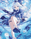 نقاشی آبرنگی ۳۰×۳۰انیمه آبی