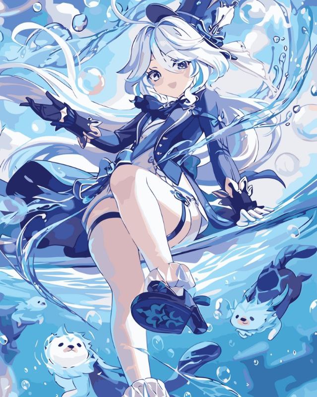 نقاشی آبرنگی ۳۰×۳۰انیمه آبی