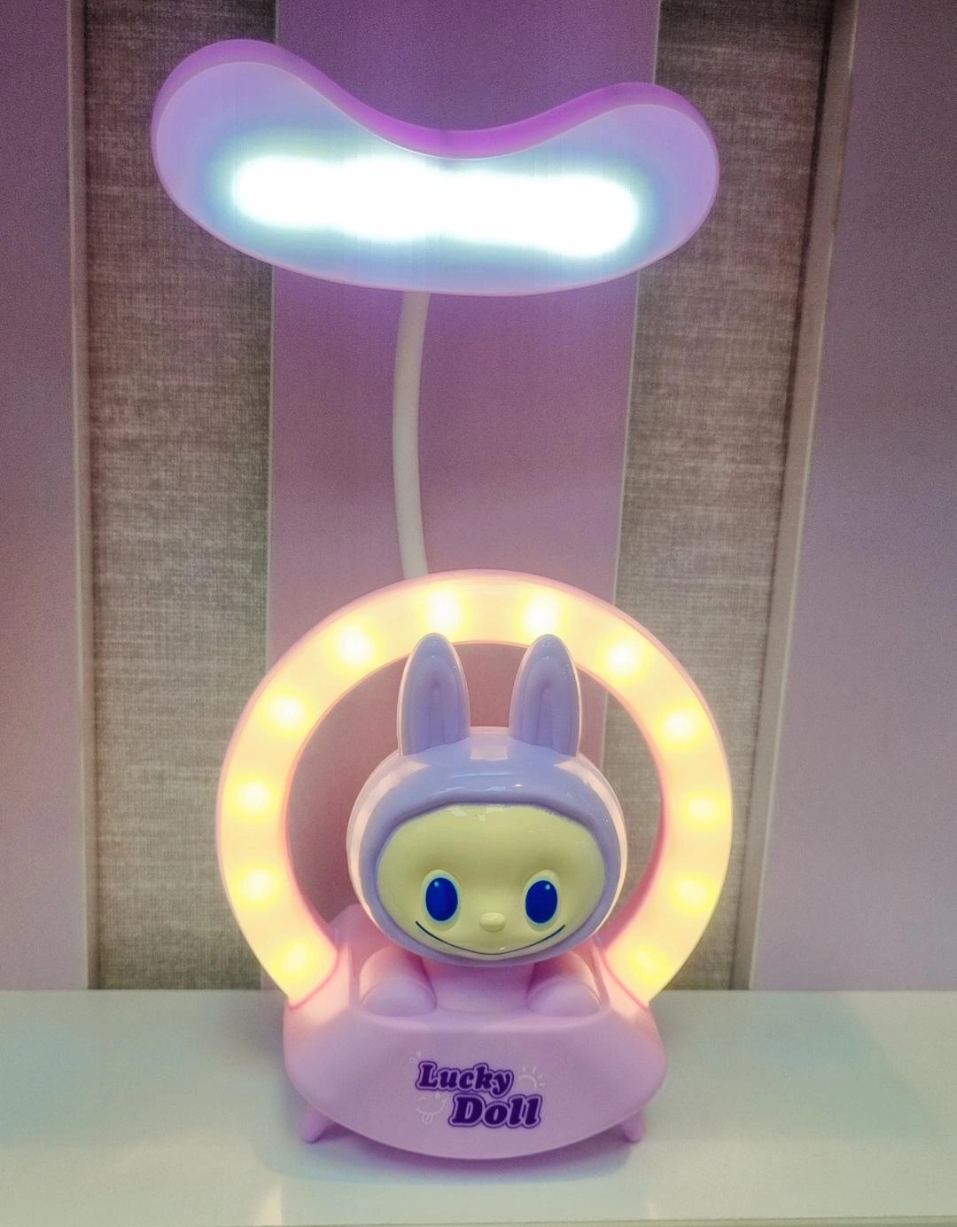 چراغ خواب و چراغ مطالعه لبوبو رینگ چراغ خواب دارای ۳ حالت نور چراغ مطالعه دوحالت نور(کم نور و پرنور) شارژی جعبه دار