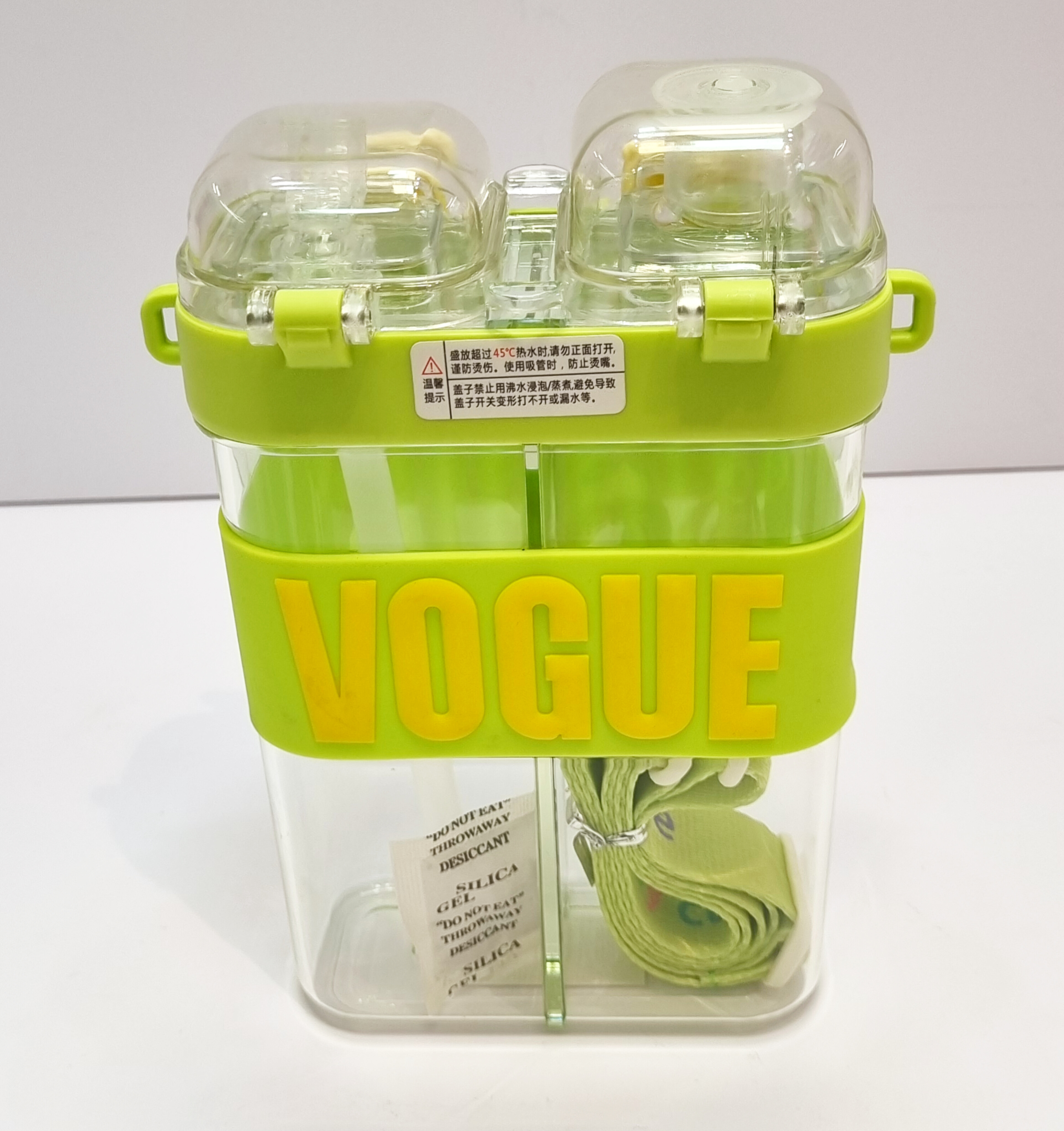قمقمه تصویر دارای دو میزنه جدا میباشد با دو سری نی و آسان نوش همراه بند آویز برای سهولت در حمل